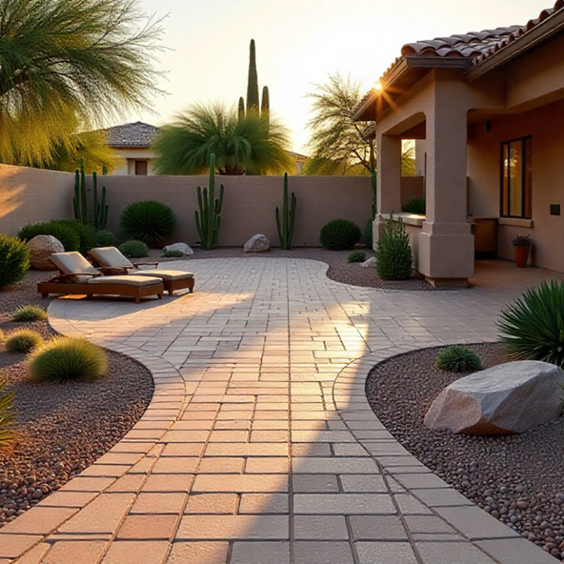 Korte beschrijving, bijv. Aanleg van een strak terras van 40 m² in keramische tegels met geïntegreerde verlichting.